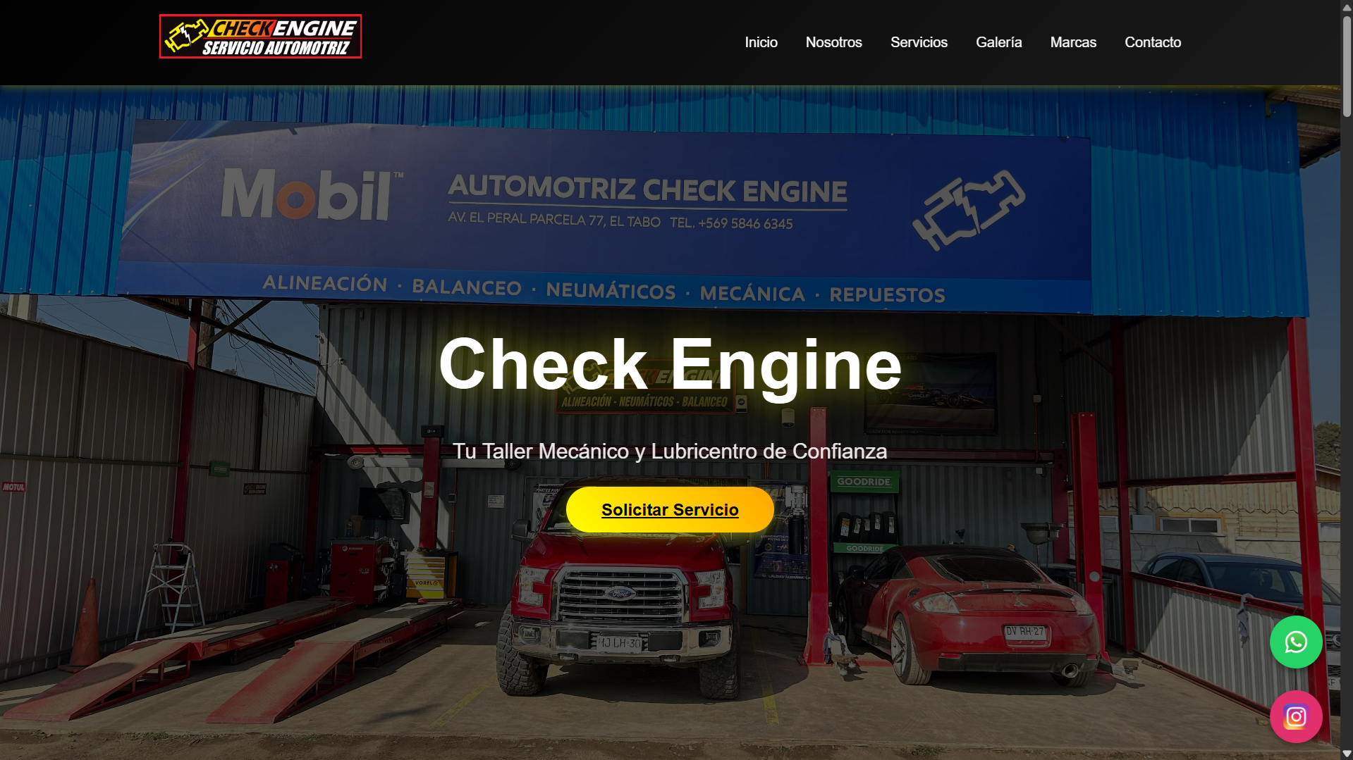 Landing Page desarrollada para Check Engine Automotriz, que permite a los usuarios conocer los servicios ofrecidos, contactar y solicitar presupuestos.