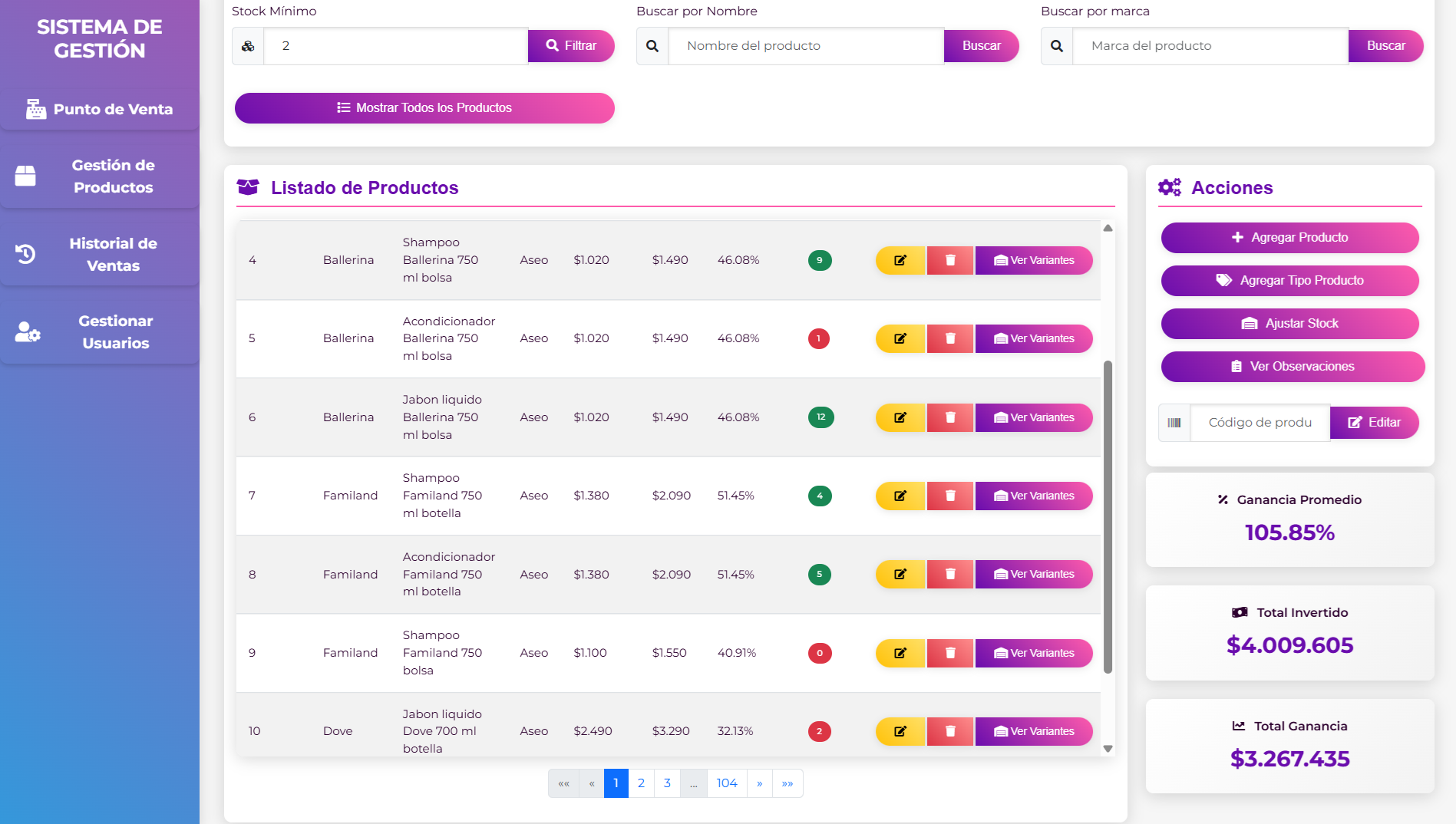 Sistema de gestión desarrollado para Litoral Clean, que permite la gestión de ventas, productos, ver qué productos se vendieron más y menos, y generar reportes de ventas e inventario.
