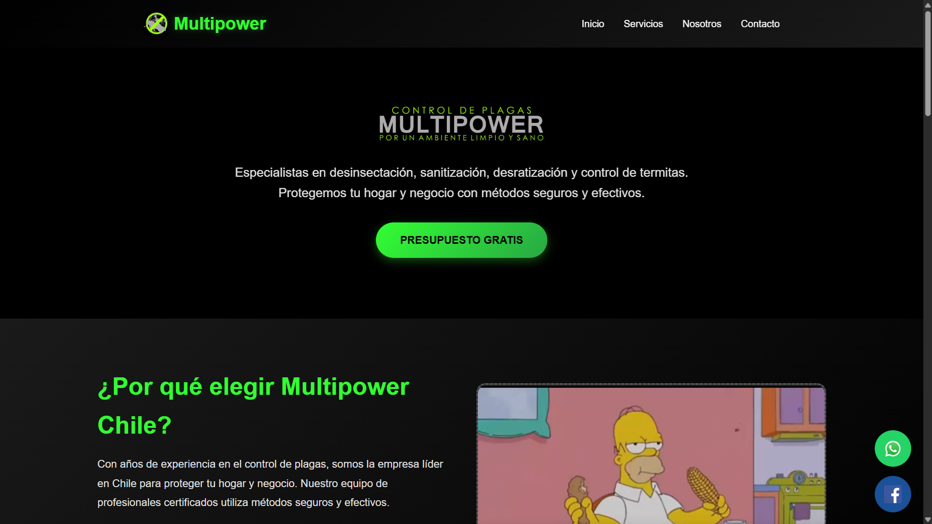 Landing page desarrollada para MultiPower Chile, que permite a los usuarios conocer los servicios ofrecidos, contactar y solicitar presupuestos.